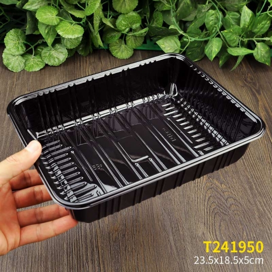 Frozen fresh food black pp meat tray container for supermarket meat packaging.