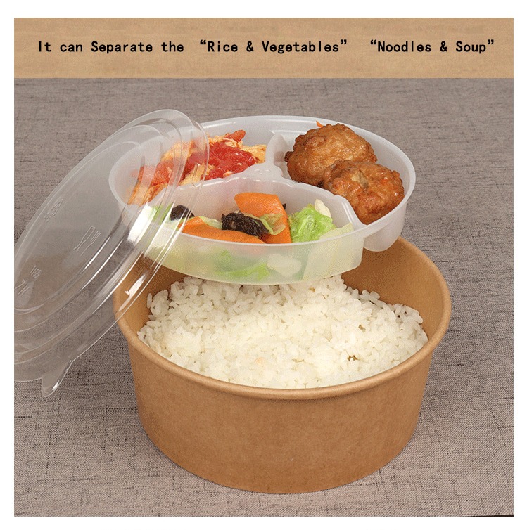 4.Hot and cold universal: This paper bowl with lids can be used not only to hold salad,thick soup, microwave hot dishes, but also to make ice cream. It can be perfectly adapted to cold and hot, and can meet your different needs.