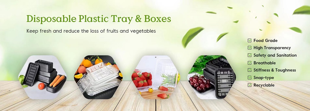 We mainly supply disposable pet fruit and vegetable trays, fruit boxes,vegetable boxes, salad boxes, pastry boxes, PVC plastic wrap and related products.